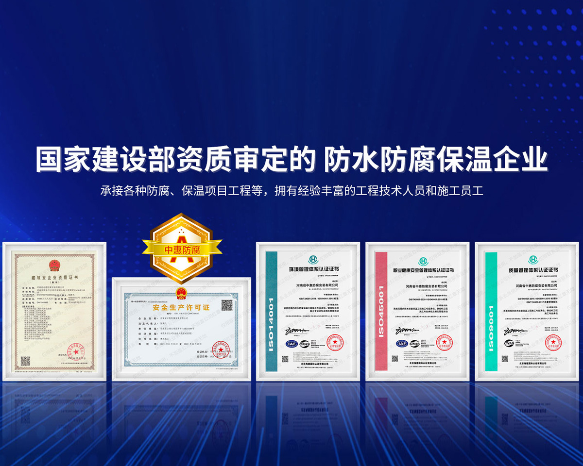公司經營范圍:防水防腐保溫工程;消防設施工程;建筑裝修裝飾工程;建筑機電安裝工程;電力工程;建筑工程;石油化工工程;工業清洗工程;油罐清洗工程;鋼結構工程;環保工程;模板腳手架工程;電纜防火封堵、防污閃噴涂、外墻外保溫工程;各類施工勞務作業;設備維修、船舶鉚焊、涂裝;電力工程材料、建材、防水材料、防火材料、防腐保溫材料銷售,并相繼通過了GB/T19001-2008idtISO9001:2008GB/T50430-2007質量管理體系認證證書。GB/T24001-2004idtISO14001:2004環境管理體系認證證書。GB/T28001-2011idtOHSAS18001:2007職業健康安全管理體系認證證書。公司是中國防腐蝕于防護協會、中國施工企業管理協會、電力協會和中國鋼結構防水協會會員單位?! 」镜慕洜I業務涵蓋了石油、化工、電力、冶金、煤炭、船舶、國防、燃氣、水利、環保、交通運輸、航空及國防軍工和輕紡市政等行業的防腐保溫絕熱設備。鋼結構安裝、防火、防水、金屬噴鍍、聚脲噴繪、陰極保護、防滲透堵漏、玻璃鋼及各種磚版材料襯里、橡膠襯里、煙氣硫和耐酸溶劑腐蝕等工程施工。公司連續十年榮獲“省市先進施工企業”“安全生產先進單位”“重合同,守信用企業”和“AA***資質企業”的稱號。2000年被命名為市級文明單位,2002年被國家工商行政管理局命名為“重合同,守信用的企業”、被中國工業防腐蝕技術協會命名為“防腐蝕企業,能源節約及環境保護領域有豐富的經驗和***的業績。工程一次交驗合格率100%。其中攀枝花鋼鐵公司煉鐵廠四號高爐及熱風爐防腐工程、上海寶鋼公司煤氣柜防腐工程、撫順石油一廠裝置防腐項目、齊魯石化公司稀烴廠高塔防腐工程、吉林化學工業公司煉油廠油罐防腐工程、天津石化熱電廠六號爐頂棚聯絡管保溫工程、大慶油田(太倉)力神泵業工程、中國化學工程第十一建設工程、中原油田勘探局工程、中國石化銷售有限公司華北分部、魯皖輸油管道工程、貴州開磷息烽合成氨工程、陜西黃陵煤化工程、中國石油天然氣西部管道塔里木輸油工程、邯鋼集團邯寶鋼鐵公司煉鐵工程、德州供電工程、吉寶(南通)船廠工程,偃師華潤熱力工程、鄭州熱力總公司?! 『幽鲜≈谢莘栏惭b有限公司愿以豐富的施工經驗,***的技術,***的設備,***的管理,***的服務,竭誠為國內外廣大的用戶提供***滿意、******的工程作品。 我公司愿與國內外同仁一道,團結協作,共同推進防腐蝕行業發展! 公司地址:河南省長垣縣建設路北段360號 固定電話:0373-8866488 郵編:453400 網址:http://www_zhff_com_cn.dehuiquanjia.com